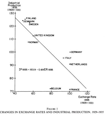 merco, el efecto marshall-lerner se da bajo supuestos muy estrictos. Que exista un deficit de balanza de pagos sin solución por sobrevaloración relativa de tu canasta local de precios, y que hayas empezado un proceso de ajuste de esa balanza por deflación nominal de valores. Si estas en recesión, casi depresión, tu estructura local frente al oro (1930`) seguía cara frente a tu competencia internacional (mas allà que tu elasticidad precios fuera mayor o menor)
